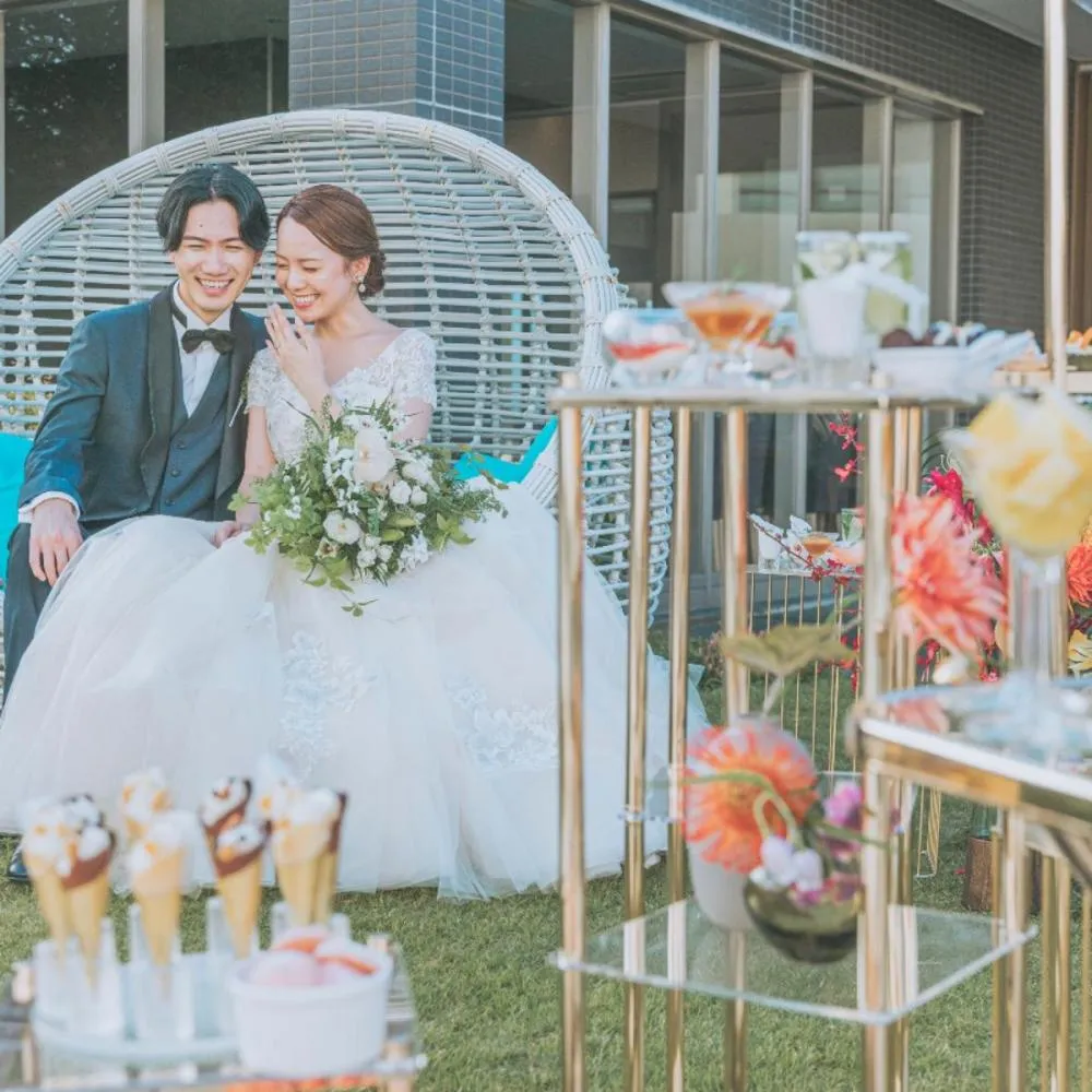 コーディネート次第でおふたりらしい雰囲気にカスタマイズ。専属スタッフがしっかりとサポート。チャペル挙式やガーデン挙式。和装人前式。2会場から選べる自由度。1日1組限定ウエディングで組み合わせは自由♪